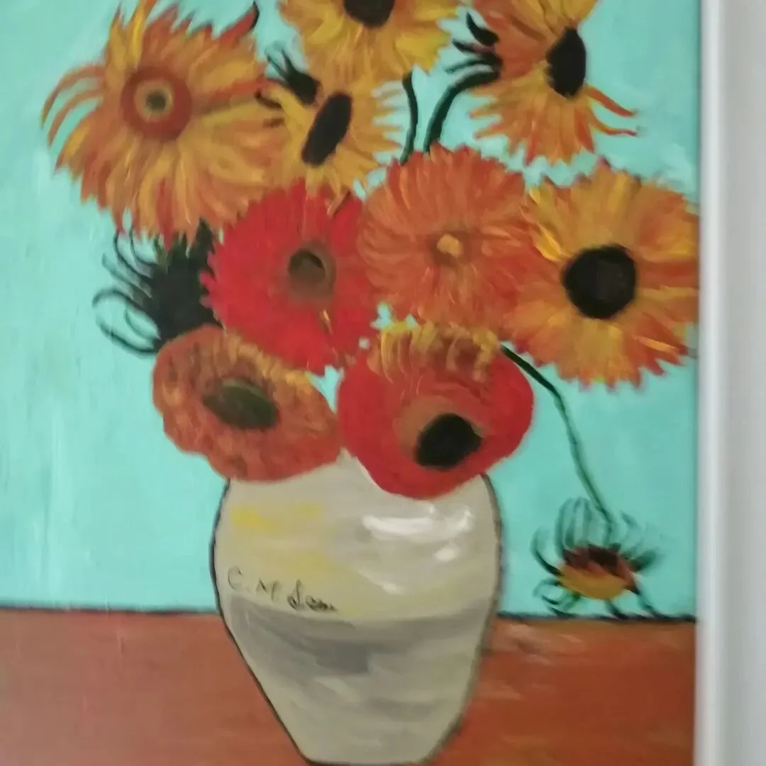 'Sun Flowers in Tribute to Van Gogh'. Acrylic on canvas. Width 46cm x Height 61cm. £250.