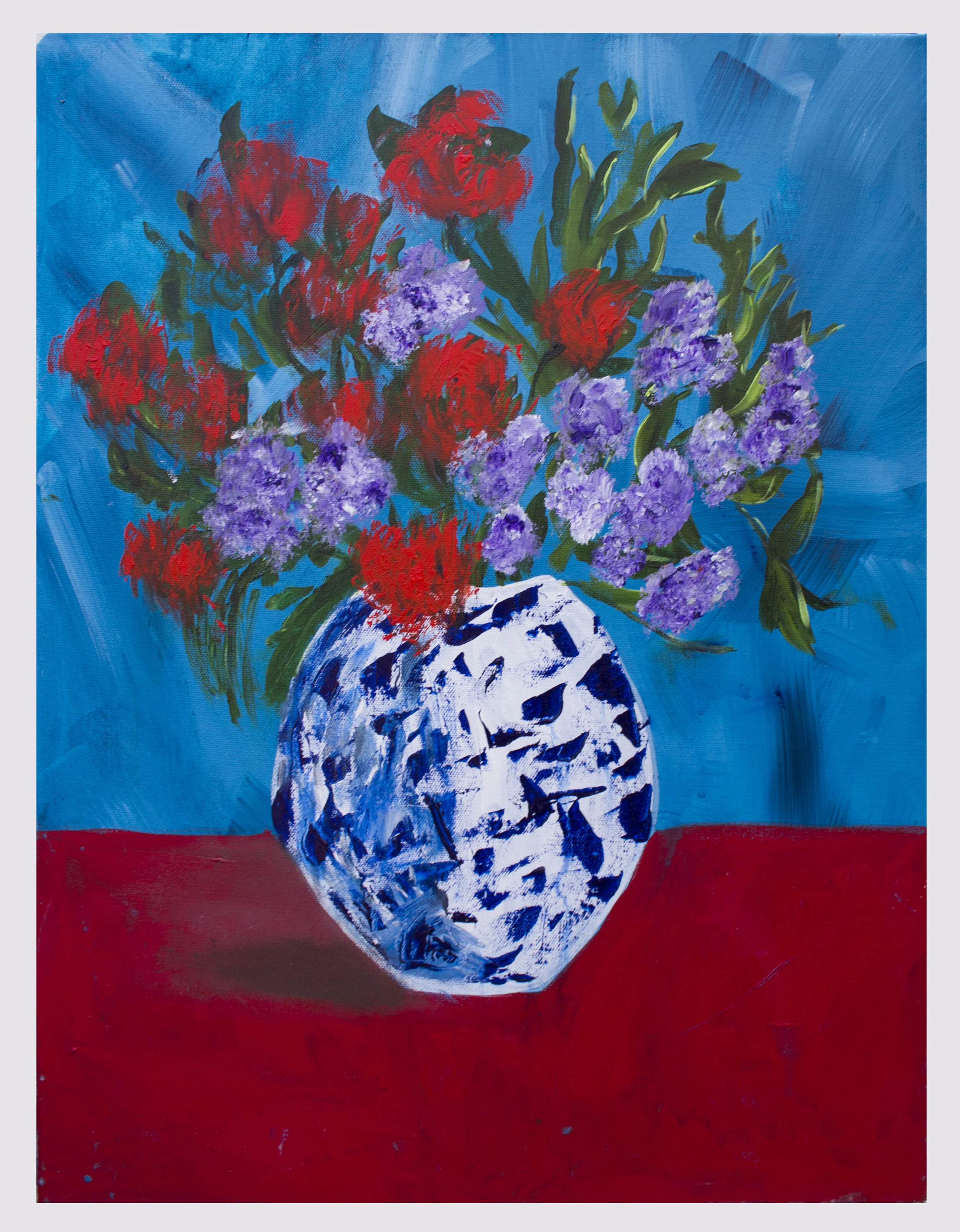 Vase with red and purple flowers Acrylic on 3D canvas w 46cm h 61 cm £250 (77)